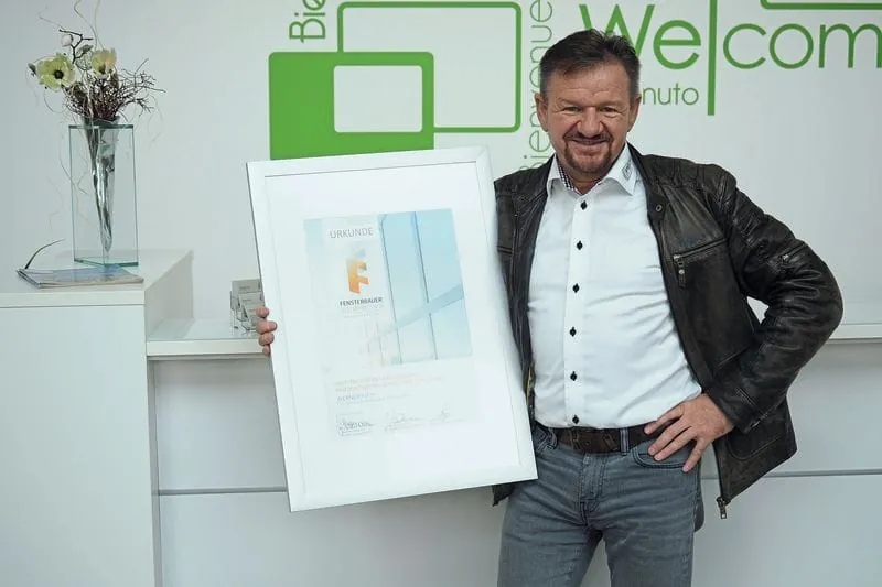 Wenn Werner Fech seine Auszeichnung zum Fensterbauer des Jahres nicht gerade im Arm hält, steht das Stück gut sichtbar vor dem Empfangsthresen seines Unternehmens.