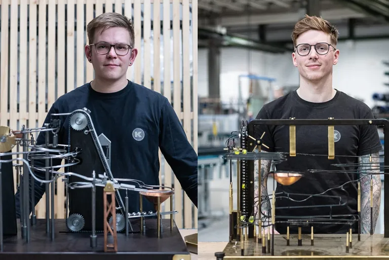 Parallel fertigten Kern und Elschleger ihre Meisterstücke: eine Kugelbahn mit elektrischem Beförderungssystem. Die letzte Hürde war ein Fachgespräch über das Meisterstück und die jeweils angewendeten Arbeitstechniken.
