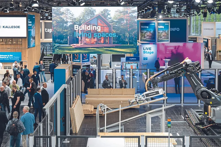 Zentrale Anlaufstelle in Halle 14 bildete der Auftritt von Homag. Die Gruppe präsentierte erstmals ihre geballte Expertise auf mehr als 5.500 Quadratmetern an einem Ort. Unter dem Motto „Building living spaces“ zeigten Homag, System TM, Kallesoe, Weinmann, Schuler Consulting, Tapio und Benz, wie sich Lebensräume nachhaltig gestalten lassen – von der Massivholzbearbeitung über den Holzbau bis hin zum Möbelstück. "Wir haben uns auf der Ligna mit unserem umfassenden Portfolio präsentiert und damit die Position als Markt- und Technologieführer unterstrichen", bekräftigte der Homag-Vorstandsvorsitzende Dr. Daniel Schmitt.