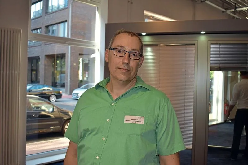 Lutz Heubaum ist Betriebsleiter von Sollingglas Bau und Veredlung. Ich bin heute zum ersten Mal hier im Showroom von Wicona und seinen Partnern. Ich finde das Konzept und die Gestaltung wirklich gelungen. Es gibt verschiedene spannende Aussteller, die alle gleichberechtigt wirken und sich gut ergänzen. Sollingglas Bau und Veredlung ist seit fünf Jahren Mitglied im Flachglas MarkenKreis und der ist seit knapp einem Monat Next Partner. Wir freuen uns, dabei zu sein, und stellen hier auch bereits unsere schaltbaren Glasscheiben aus. Das bringt uns hoffentlich noch einmal weitere Aufmerksamkeit. Außerdem kann man den Showroom gut nutzen, um Kontakte zu knüpfen und den Wettbewerb kennenzulernen. Da jeder Partner oder Aussteller ein spezielles Gebiet hat, erkannt man schneller Gelegenheiten für eine Zusammenarbeit. Diese Möglichkeit zeigt das Studio Next besonders gut auf. www.sollingglas.de