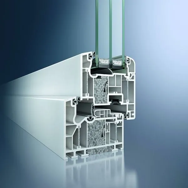 Eine neue Aluminium-Verbund-Technologie erlaubt stabile Profilkonstruktionen aus Kunststoff ohne Stahlarmierung. Das geringe Gewicht kommt v.a. den Monteuren zugute. Dank der neuen Oberflächentechnologie lassen sich die Kunststoffprofile zudem in Metallicfarbtönen ausführen.