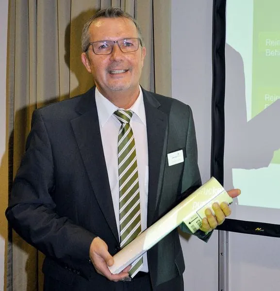 Christoph Gilles von Enviro Falk erläuterte in seinem Vortrag „Wasseraufbereitung – unverzichtbar für gutes Glas“, dass beim Waschvorgang die in der Glaswaschmaschine eingesetzte Wasserqualität eine entscheidende Rolle für die spätere Produktqualität spielt. Der Anwendungsberater stellte dar, wie die Anlagentechnik des Prozesswasser-Spezialisten Stadtwasser zu vollständig entsalztem Wasser aufbereitet. „Je mehr Salze herausgefiltert werden, desto niedriger ist die Leitfähigkeit und desto reiner ist das Wasser“, fasste Gilles den Aufbereitungsprozess zusammen. Nach einer Vorbehandlung wird das Rohwasser in einer Enthärtungsanlage zu Weichwasser. Anschließend filtert die Umkehrosmose-Anlage 98 Prozent der Salze heraus. Um das Prinzip der Osmose zu verdeutlichen, warf Gilles die Frage auf: Warum platzt die Kirsche nach dem Regen? Eine verdünnte Lösung (Regentropfen) ist durch eine halb durchlässige Membran (Kirschhaut) von einer höher konzentrierten Lösung (Zuckerlösung) getrennt. Das System möchte ein Gleichgewicht herstellen: Aus der verdünnten Lösung strömt die Wasserphase durch die Membran, in der konzentrierten Lösung steigt der Druck an, die Kirsche platzt auf.