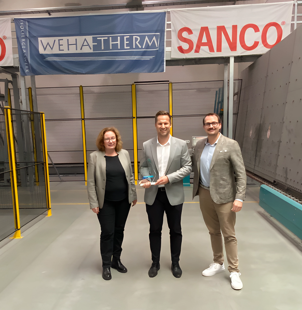 Das Familienunternehmen, das auf die Herstellung und Montage hochwertiger Glasprodukte spezialisiert ist und neben Verbundsicherheitsglas auch Einscheibensicherheitsglas produziert, zählt mit rund 150 Mitarbeitenden zu den führenden Unternehmen in der Region. Die Auszeichnung mit dem Sanco Reference Award unterstreicht nicht nur die hohe Qualität der Arbeit von Weha-Therm, sondern auch die Bedeutung der partnerschaftlichen Zusammenarbeit innerhalb der Sanco-Gruppe. "Weha-Therm zeigt, wie aus Engagement und Kompetenz Projekte entstehen, die die Werte unserer Gruppe nach außen tragen. Das ist ein Vorbild für unsere gesamte Partnergemeinschaft", so Denis Löhle, Vertreter der Sanco Gruppe, der gemeinsam mit seiner Kollegin Ulrike Gromnitza den Preis überreichte.