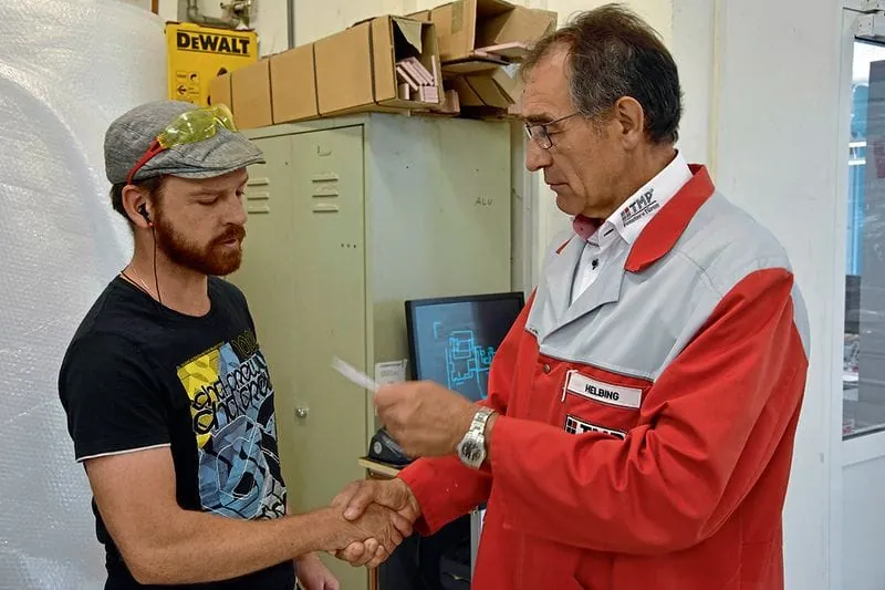 Und wird nicht müde, ihr zu danken, „wie sie mir seither den Rücken freigehalten hat“. Thüringen, die sog. Neuen Bundesländer und Deutschland könnten mehr Bernhard Helbings gebrauchen. „Ich persönlich“, sagt er dem Reporter, „wollte zeigen, dass ich in der Lage bin, hier etwas aufzubauen. Aber wichtiger ist es, als Einzelner Verantwortung zu übernehmen und sich in der Gesellschaft zu engagieren.“ Übrigens: Schließt TMP Fenster + Türen ein Geschäftsjahr über Plan ab, erhalten operativ Verantwortliche je nach Ergebnis Zuschläge von sechs bis 15 Prozent. Leistungsanreize statt Wohltaten nach dem Gießkannenprinzip – das fordert Helbing auch von der Politik.