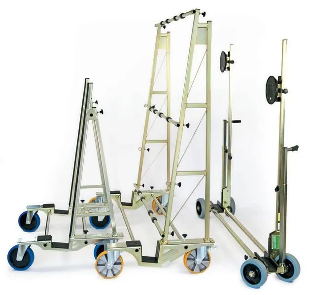 Die Firma Transportsolution bietet für Glaser und Fensterbauer ein umfassendes Programm an Transportgeräten. Eine Besonderheit ist der patentierte Glastransportwagen, der zum Schutz der Scheibe einen extrem tiefen Schwerpunkt besitzt.