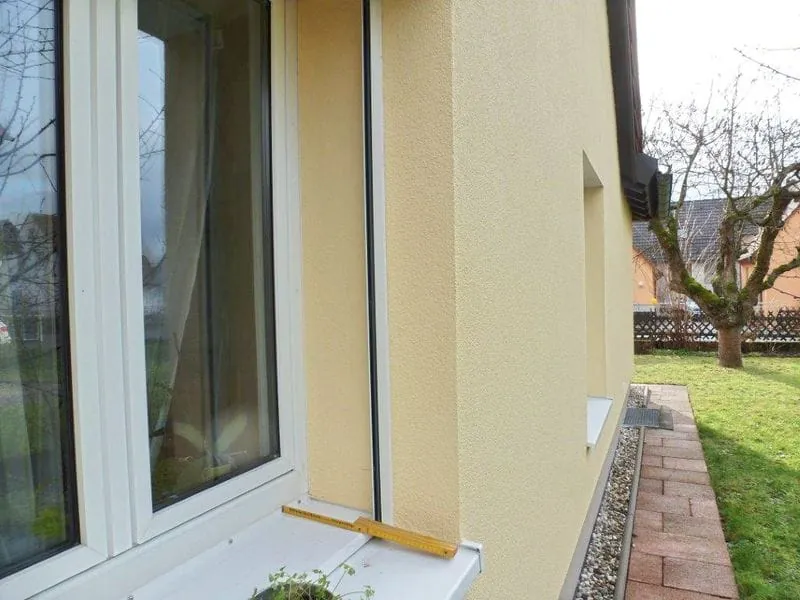 Wie solch eine Planung funktioniert, zeigt das Beispiel eines Hauses in Zellingen am Main in Unterfranken. Hier stand 2013 die Fassadendämmung an. Die Bauherren gingen derart vor, dass später einmal Passivhaus-Fenster die alten ersetzen sollten, ohne dass erneut Arbeiten an der Fassade anstehen würden. Für den Einbau künftiger Fenster haben sie über das bestehende, außen liegende Fensterbrett zwei neue Bretter stufenweise angebracht. So ist es später nicht mehr nötig, eines einzubauen – das obere Fensterbrett kommt weg. Zudem ließen die Eigentümer einen Holzrahmen am bestehenden Außenputz anbringen, so dass sich die neuen Fenster später daran verschrauben lassen. Das künftige Fenster wird über den Fensterrahmen seitlich am Holzrahmen verschraubt. Als weitere Maßnahme kam ein neuer Rollladenkasten zum Einsatz, der, wie das neue Fensterbrett auch, bereits an der richtigen Stelle für die künftigen Fenster sitzt. Gleichzeitig minimierten die Verarbeiter Wärmebrücken. „Gemeinsam mit der Fassade wurde eine Lüftungsstrategie erarbeitet“, erinnert sich Theumer. Am Außenputz brachten die Handwerker ein Luftdichtheitsband für die künftigen Fenster an. „Durch diese Maßnahmen ist es später einfach, die Fenster auszutauschen. An der Fassade muss nichts mehr gemacht werden – dadurch ist es möglich, schneller zu arbeiten“, sagt Theumer.