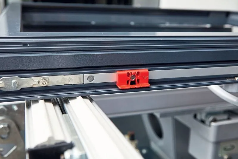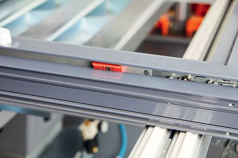 Der Schließzapfen kann beidseitig einlaufen. So lassen sich die Sicherheitsschließstücke im gesamten Rahmenprofil gleich einsetzen, ohne dass der Verarbeiter auf ihre Ausrichtung passend zur Einlaufbewegung des Schließzapfens achten müsste. Zusätzlich vereinfacht laut Roto eine neue Positionierungslehre die Montage. Sie sei für alle Schließzapfen und sämtliche Schließstücke der Produktfamilien Roto AL und Roto AL Designo einsetzbar. Die Lehre steckt der Monteur einfach auf den Schließzapfen, bei geschlossenem Flügel ragt sie unter dem Überschlag hervor. So kann der Verarbeiter mit geringem Aufwand die korrekte Position des Sicherheitsschließstücks anreißen. Durch die seitliche Abstützung der Federstege ist laut Roto zudem ein Schalten des Beschlagsystems bei gleichzeitiger Beobachtung der Schließzapfenposition möglich.