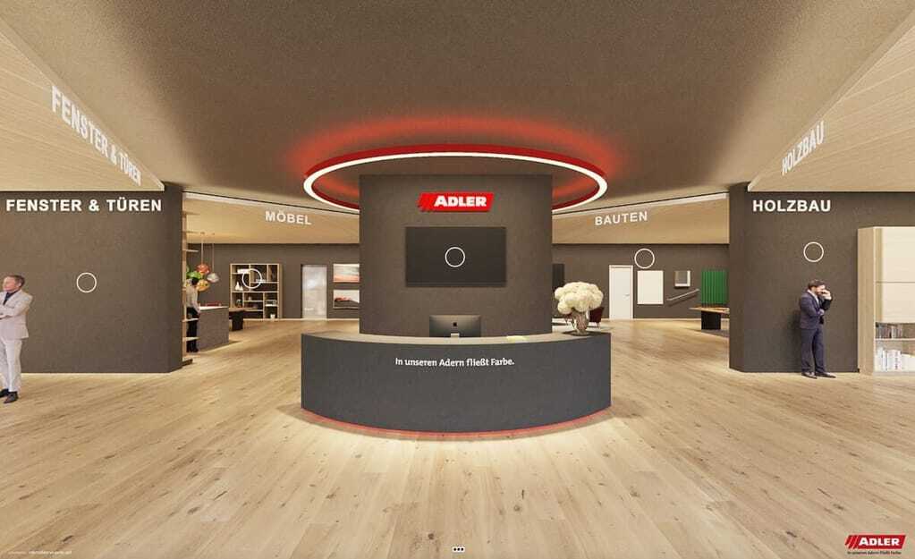 Im gegenüberliegenden Bereich des virtuellen Schauraums erleben Besucher die vielfältigen Gestaltungsmöglichkeiten für Holzfenster und erfahren alles über die Fassaden- und Innenlasuren von Adler. In jedem der 360-Grad-Räume sind Produktbroschüren und Info-Texte, Videos und Referenzen hinterlegt, die sich mit einem Mausklick öffnen lassen. An jeder Ecke warte zudem ein freundlicher Mitarbeiter, an den sich die Gäste via Mail-Formular wenden können – die Antwort komme postwendend.