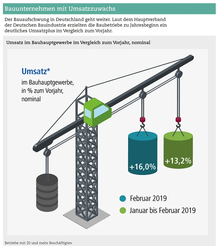 Die Baumaschinenbranche rechnet mit einem Umsatzrückgang zwischen zehn und 30 Prozent zum Jahresende. Das sei einschneidend, aber bei weitem nicht so dramatisch wie 2008 und 2009. Die Bauindustrie erwartet bei allen Einschränkungen, die derzeit bei der Aussagekraft einer Prognose gemacht werden müssen, für das Bauhauptgewerbe im Jahr 2020 aktuell eine nominale Stagnation des baugewerblichen Umsatzes.