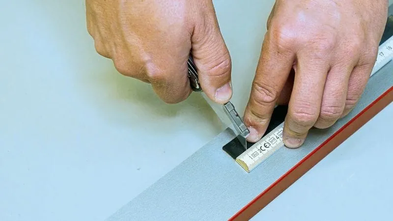 3. Schritt: Bereiten Sie die Glasmontage vor. Schneiden Sie zwei zwölf Millimeter breite Streifen EPDM-Folie ab; setzen Sie das Verglasungsgummi (viereinhalb Millimeter) ins Führungselement ein.
