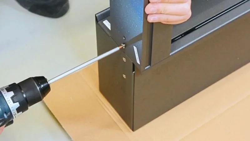 1. Schritt: Überprüfen Sie den Lieferumfang und befestigen Sie dann die Führungselemente über die Verbindungsstücke mit Schrauben am Raffstorekasten.